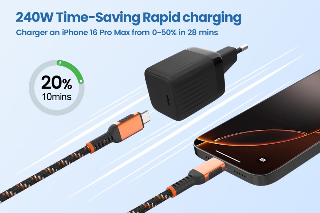 - [240W Fast Charging] : The USB C cable supports 240W/48V/5A fast charging. Charging with your MacBook, tablet, mobile phone so quickly
