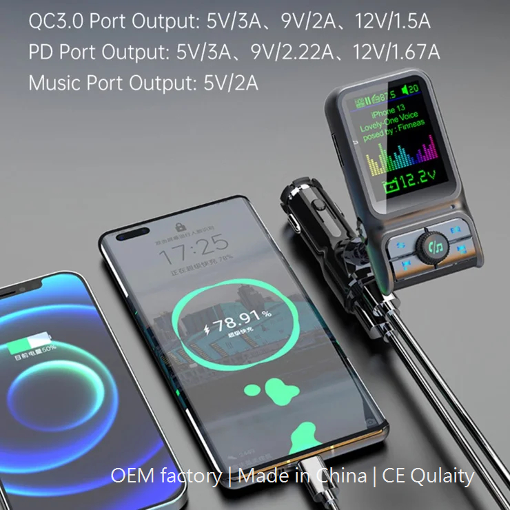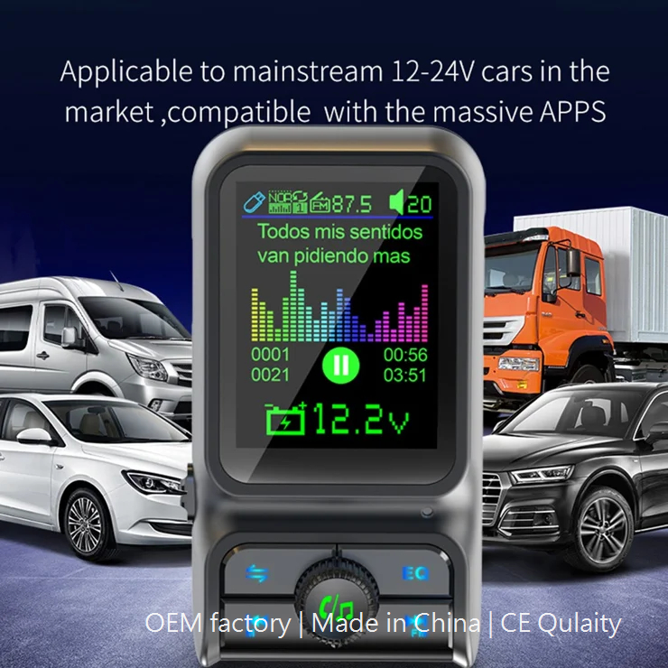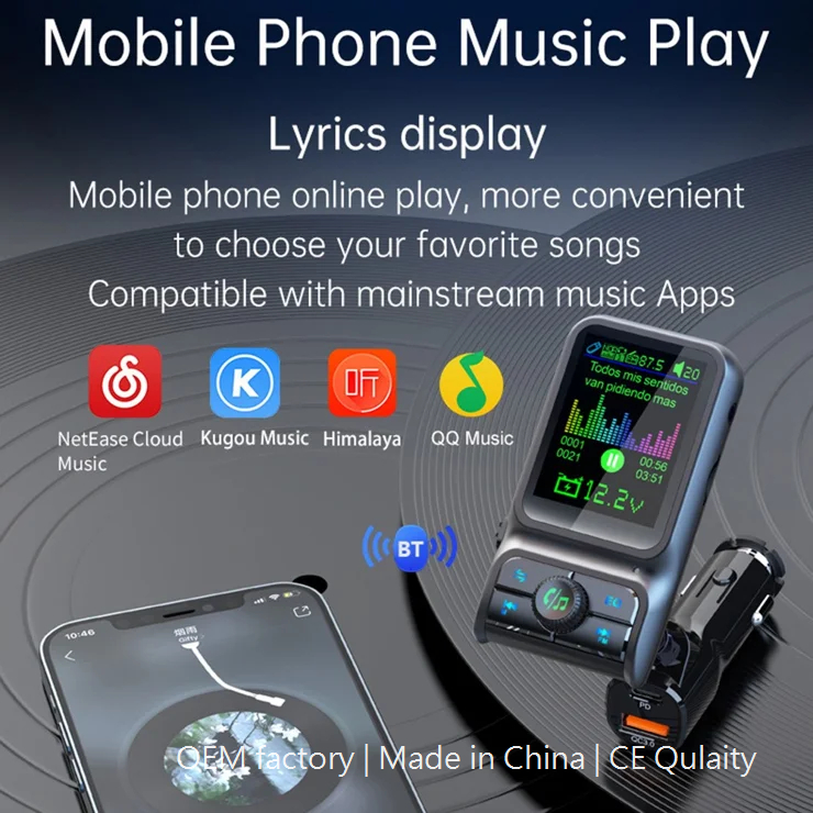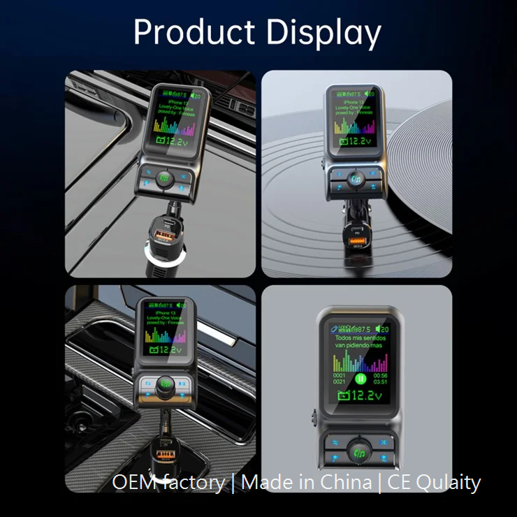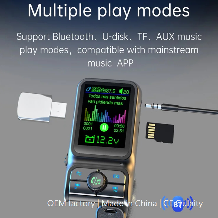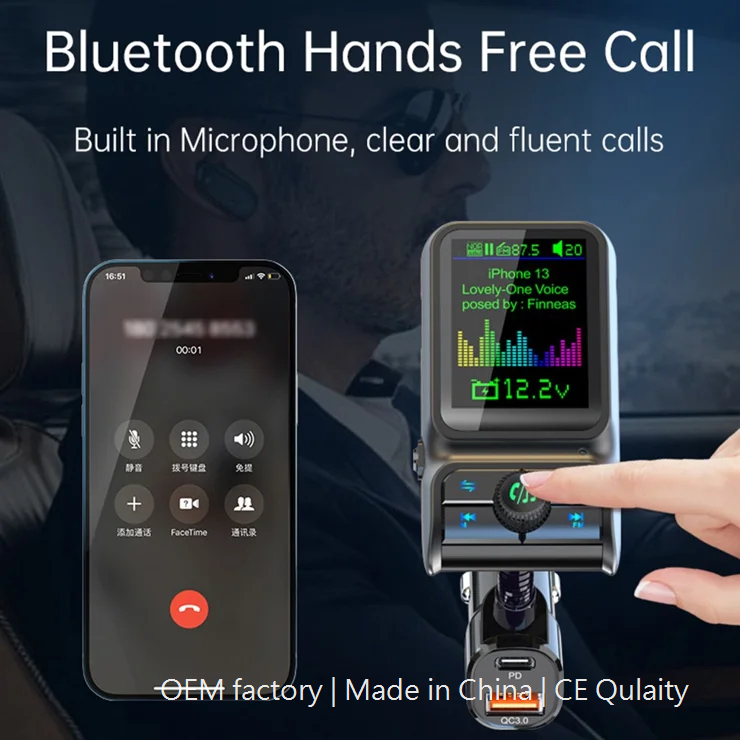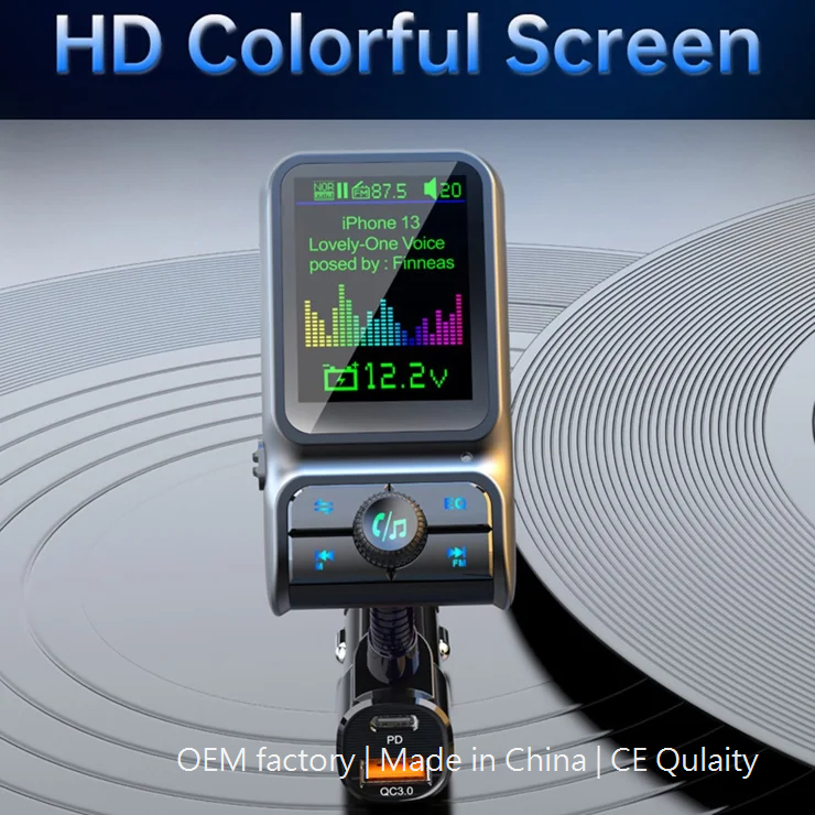Car Bluetooth-compatible Player QC3.0 / PD Fast Charger 1.77″ Color Screen Car FM Transmitter Support EQ Sound Adjustment