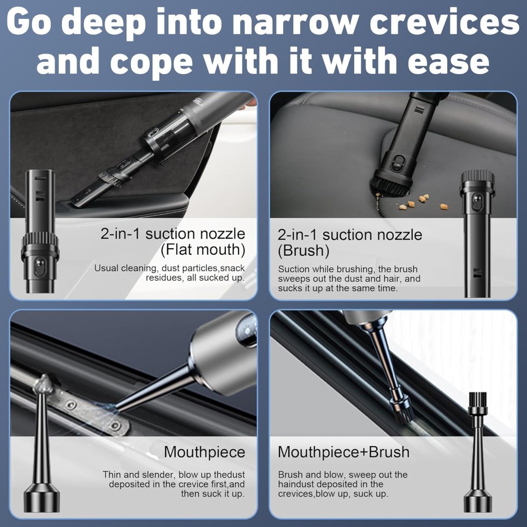 Ultra-Lightweight Dust Buster with USB-C Charging, 2 Speeds, 4 in 1 Air Blower for Car, Home, Pet