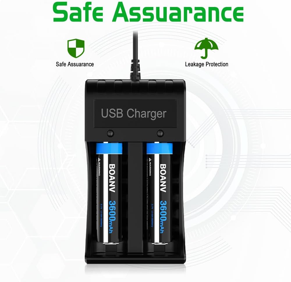 - Universal Size: 2 Pack Rechargeable Batteries for flashlight, fan, camera, etc with 2 bay charger