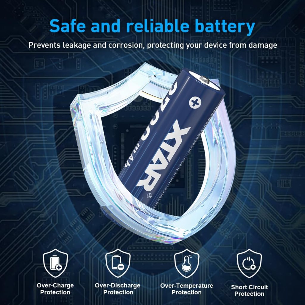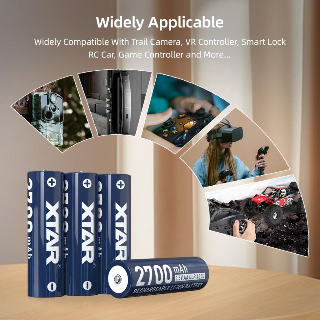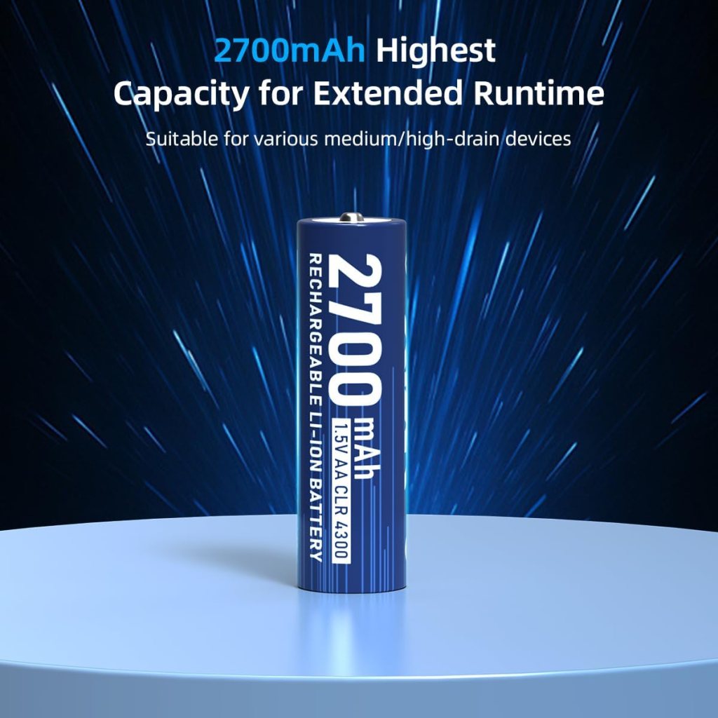 【Longest Runtime & High Capacity】 With 2700mAh highest capacity among rechargeable AA batteries, these lithium-ion cells provide extended power for trail cameras, smart locks, and medical devices, reducing frequent replacements by 50% vs. Ni-MH batteries.