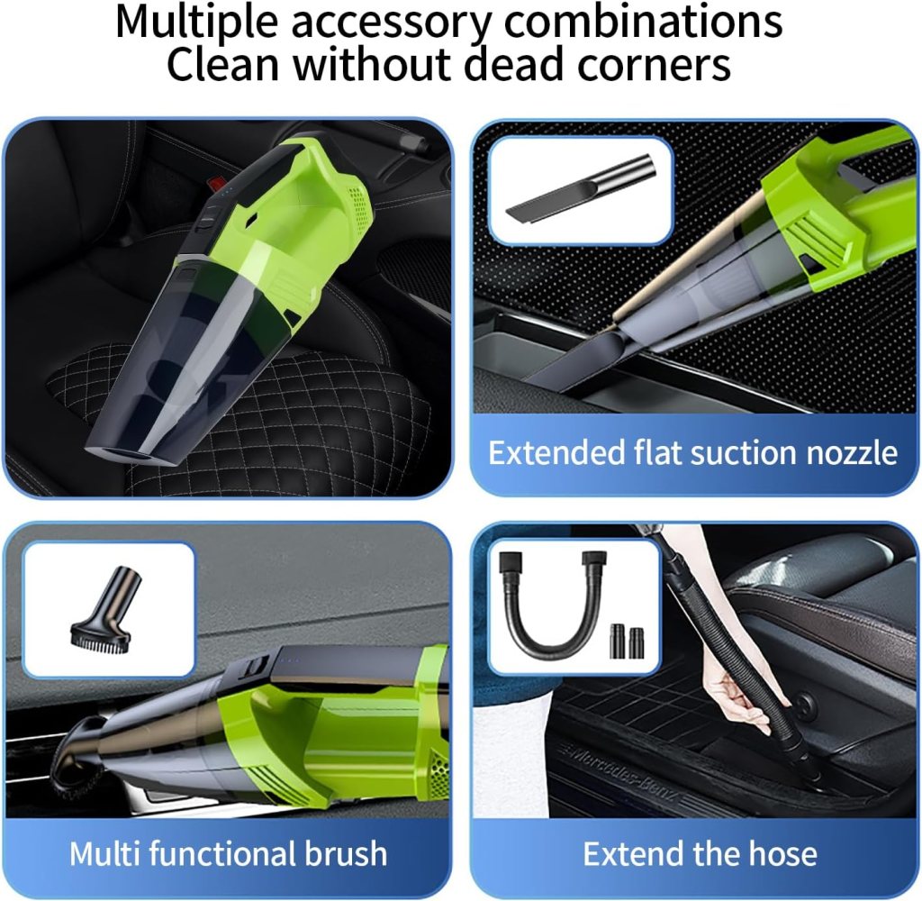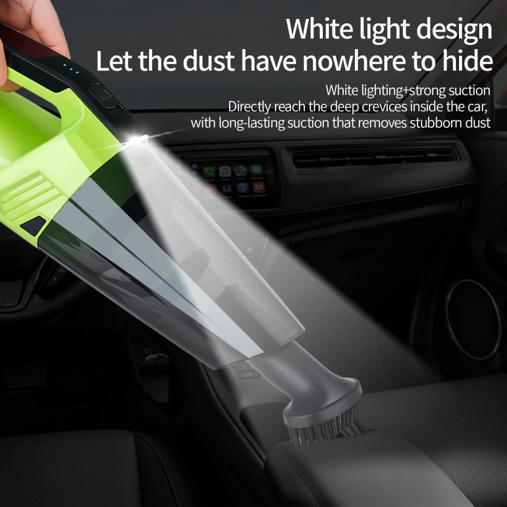 • 【Extended Battery Life and Rapid Charging】Equipped with multiple 3000mAh lithium-ion batteries and quick charge technology, this cordless car vacuum offers an extended battery life by approximately 30+ minutes when fully charged for 3+ hours. Our rapid charging technology incorporates lithium-ion battery surge protection to ensure safe operation. The LED light on the cordless car vacuum effectively illuminates those dark, hard-to-see areas.