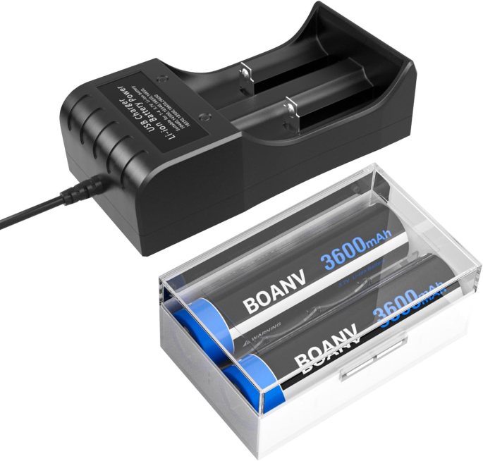 Excellent Performance: Tested by professional testers according to strict quality control standards, certified by CE and RoHS Safe&Fire Prevention: USB Charger with Red/Green led light display, safe and fire prevention PC+ABS material Battery Charger, with Over Charger Protection, Over Current Protection and Over Hest Protection etc Smart Chip Battery Charger: The charger uses the most advanced built-in smart chip to control the charging process, and has overcharge, overheating, overvoltage and short circuit protection, automatically stops when fully charged, and automatically selects the appropriate current to support 2-channel simultaneous independent charging without affecting Universal Size: 2 Pack Rechargeable Batteries for flashlight, fan, camera, etc with 2 bay charger